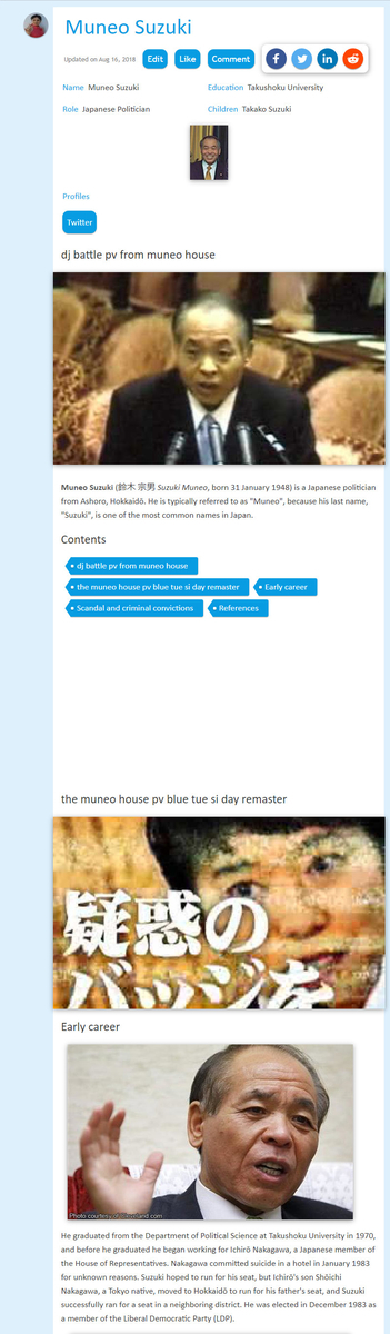 - Muneo Suzuki - Alchetron, The Free Social Encyclopedia (記事作成日時点のInternet Archiveキャッシュ)
